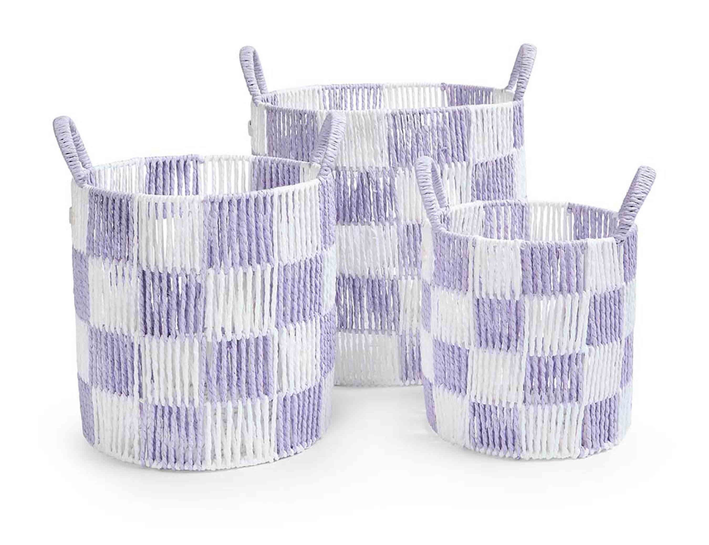 Checkerboard Storage Basket Set of 3 - Lilac
