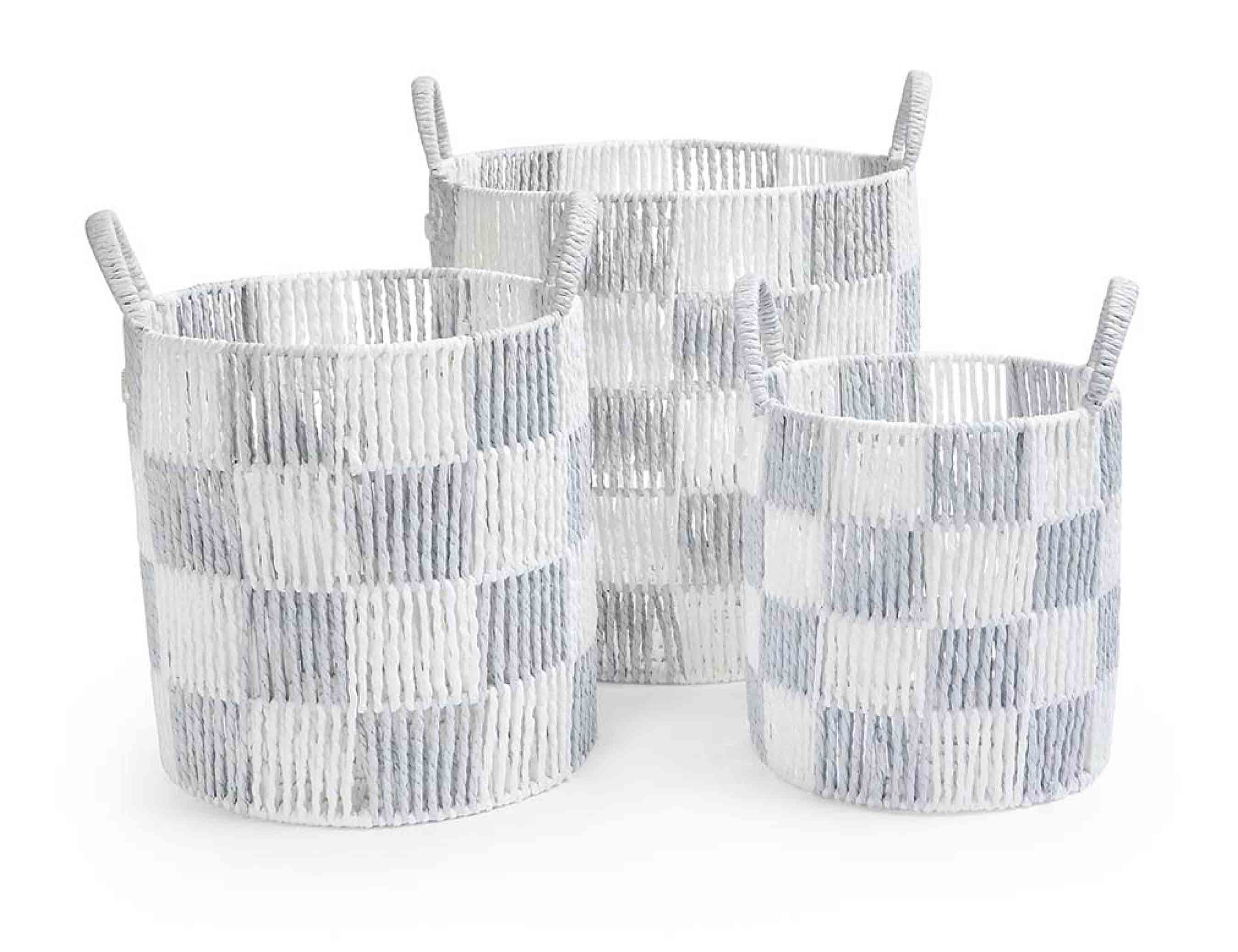 Checkerboard Storage Basket Set of 3 - Powder Blue