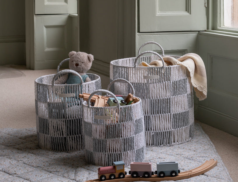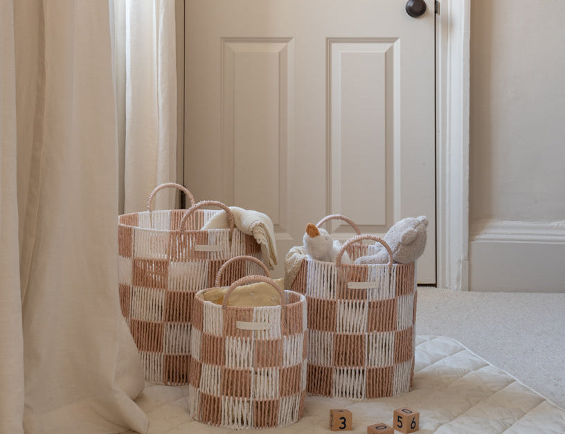 Checkerboard Storage Basket Set of 3 - Nude