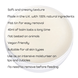 - 100% Natural & Vegan-Friendly: Free from lanolin and beeswax, our balm is safe for both mum and baby, even for use on newborns.