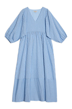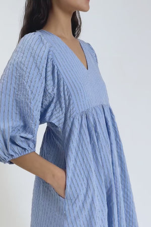 Blue Stripe V Neck Maternity Dress