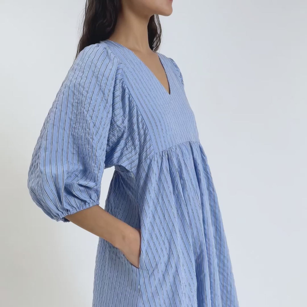 Meet your new mum-uniform: the Blue Stripe V Neck Dress. Designed for days when comfort is non-negotiable but style still matters, this easy-breezy dress is your answer to the “what do I wear?” struggle—whether you’re bump-forward, newly postpartum, or chasing little ones around the park.