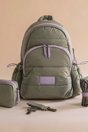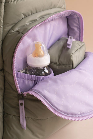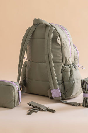 The Baby Changing Backpack in Olive is designed to be your stylish, practical companion for everyday parenting. It’s made from recycled, water-resistant materials with a quilted finish that feels modern without compromising function.