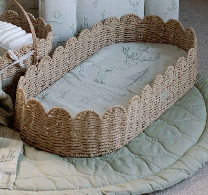 Elevate your changing station with our Scallop Edge Baby Changing Basket, where practicality meets style. Crafted with soft curves and a beautiful scalloped trim, this basket brings a touch of joy to everyday routines. It's sturdy yet lightweight structure offers a secure space for nappy changes, while the neutral tones and gentle texture blend beautifully into any nursery. Designed for comfort, style, and real-life parenting, it’s a must-have newborn essential for your neutral nursery.