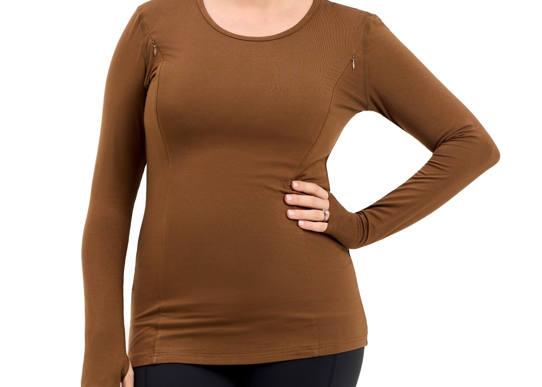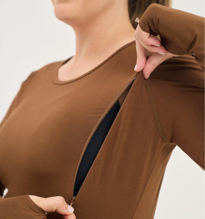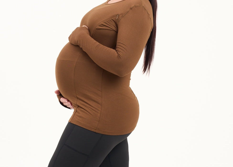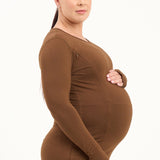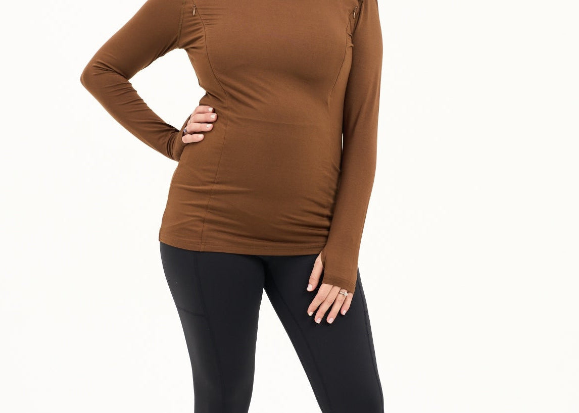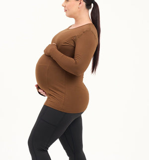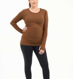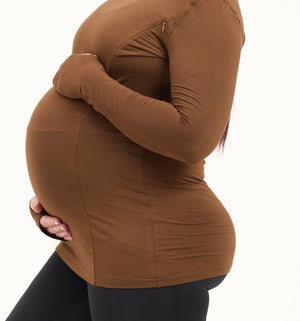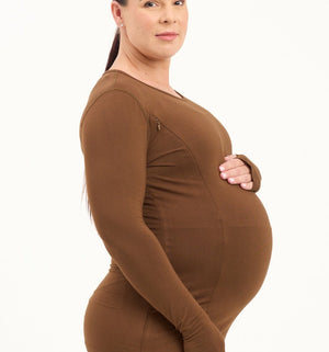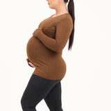 Bamboo Maternity & Breastfeeding Long Sleeved Top - Coffee