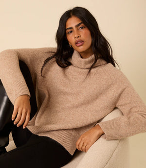 The Nobody’s Child Beige Roll Neck Relaxed Knitted Jumper is your cosy essential — soft, stylish and made to move with you through pregnancy and after.