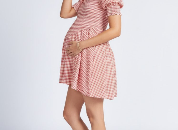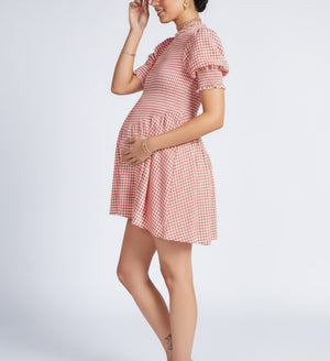 Meet the Maude Red Gingham Mini Dress—your new go-to for effortless style and comfort, whether you’re bump-forward, baby-wearing, or chasing after little ones. Designed for real-life motherhood, this dress makes getting dressed the easiest part of your day.