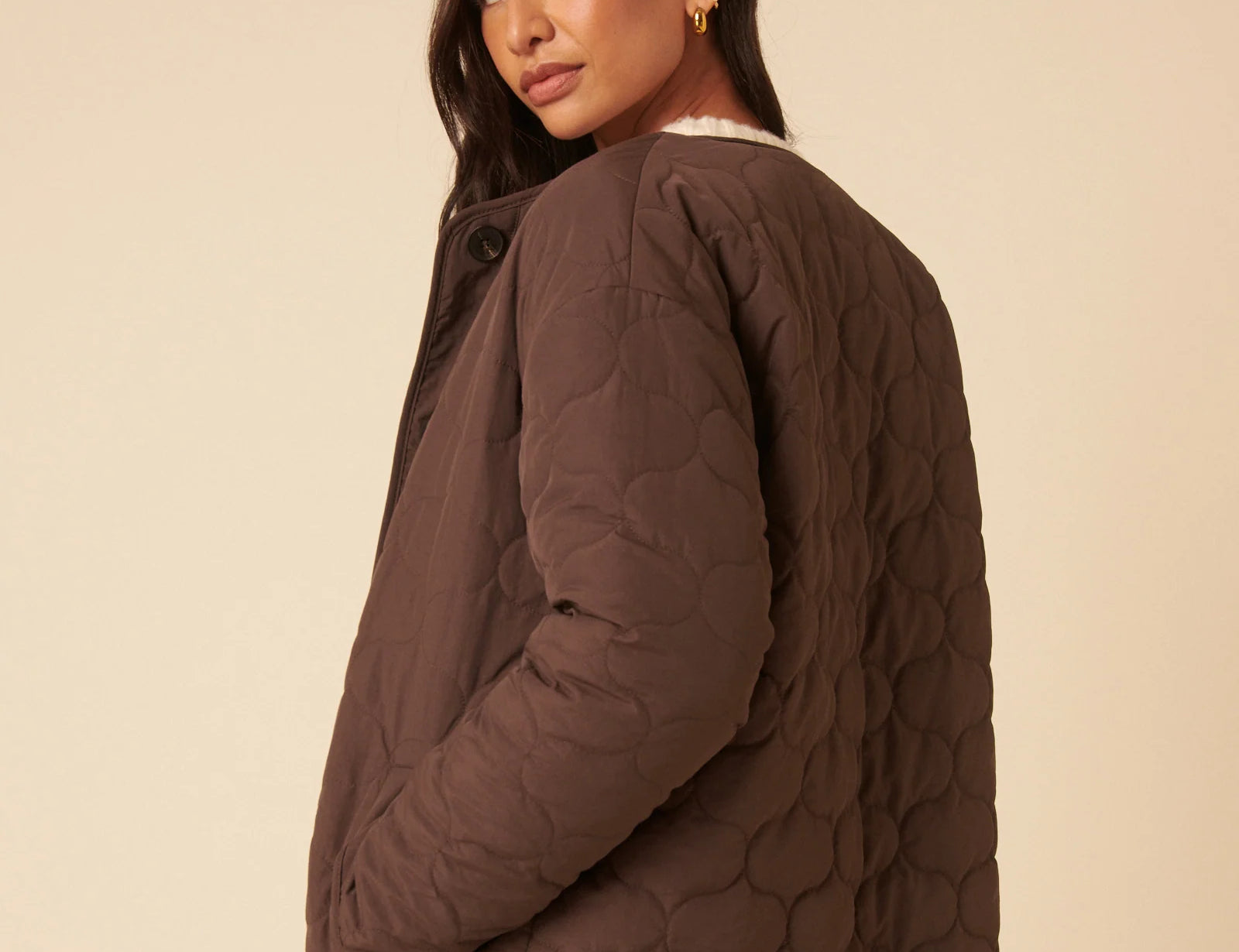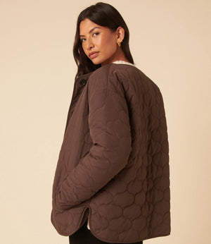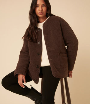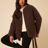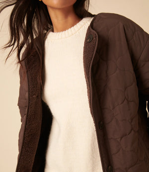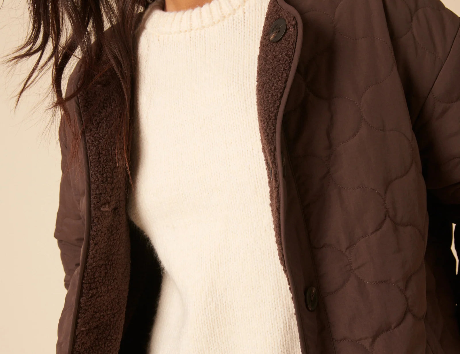 Two jackets in one? Yes please. This reversible quilted jacket gives you options. One side is soft recycled borg, cozy and textured. Flip it inside out and you have a smooth quilted shell. Both sides feature a chunky button front for styling ease.