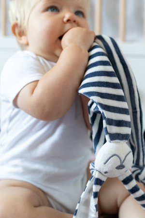 It’s sized at about 32 cm tall by 48 cm wide, which makes it easy for small fingers to grip yet still feels comforting. It’s safe from birth (with the usual caution that no loose items should be left in the cot with a sleeping newborn). The comforter is machine washable at 40 °C and tumble dries on low heat, which keeps care simple for busy parents.