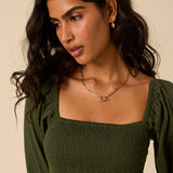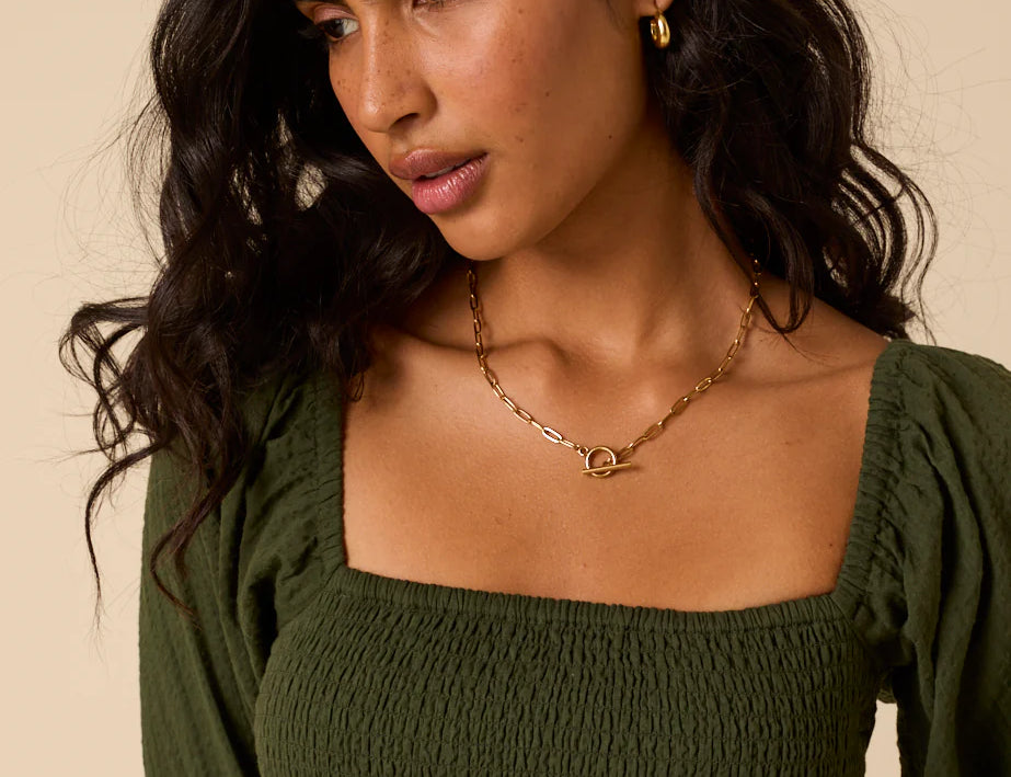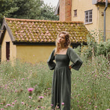 The Imogen Midi Dress is a romantic choice that blends comfort with feminine detail.