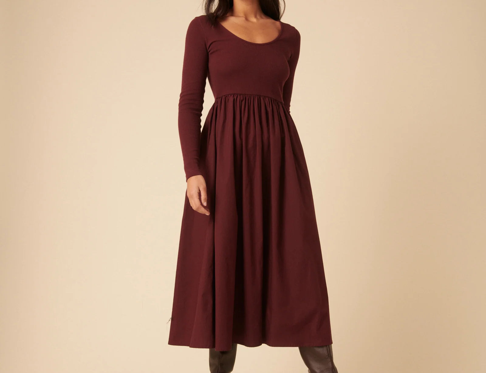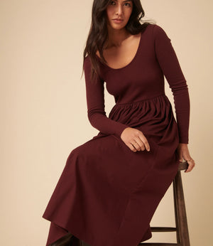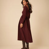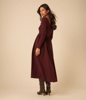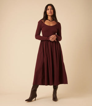 The Nobody’s Child Burgundy Jersey Long Sleeve Skater Midi Dress is soft, flattering and made to move with you now and beyond.