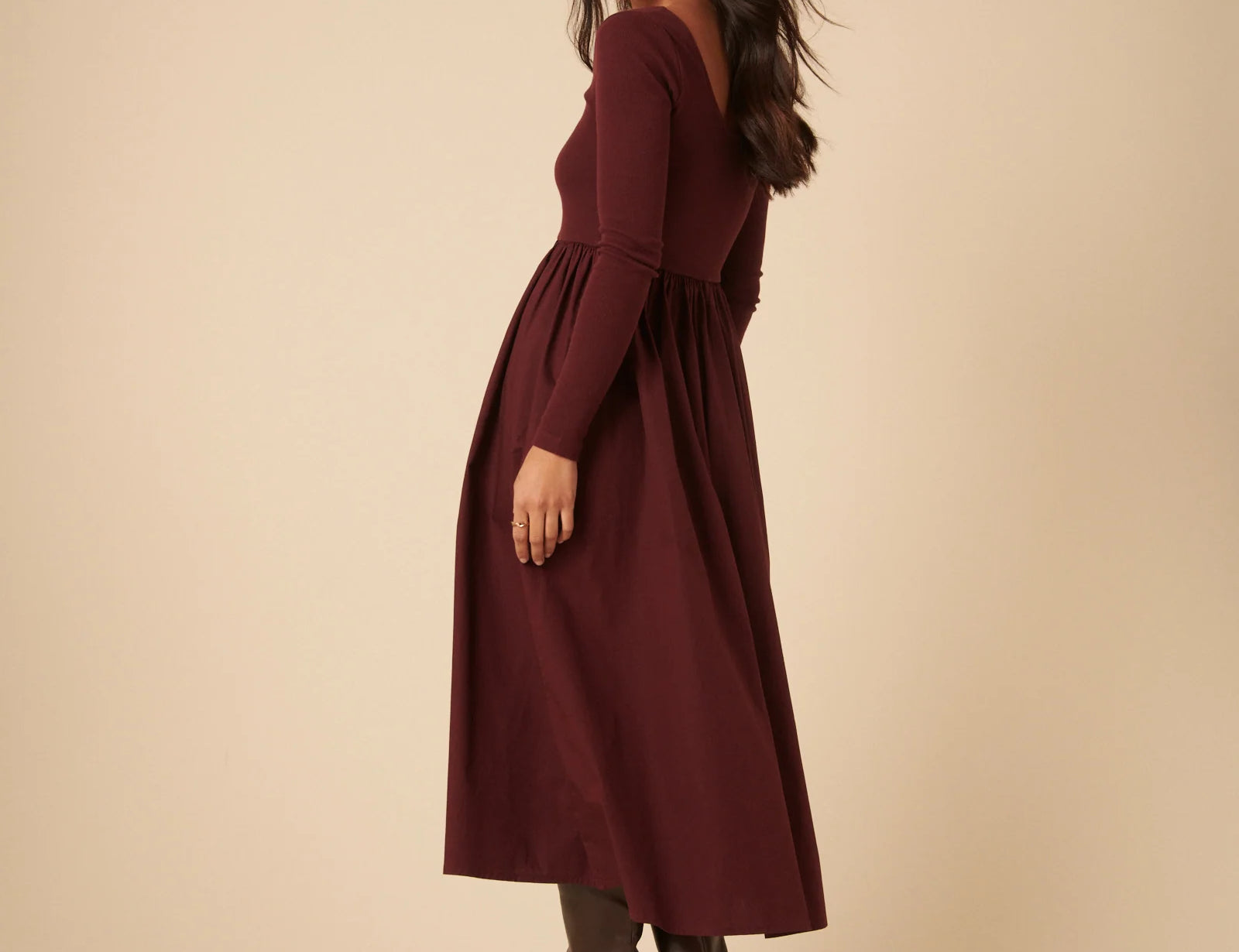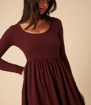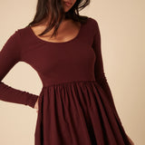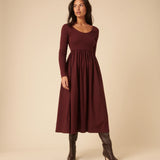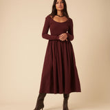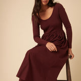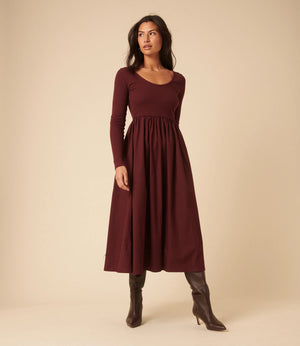 Burgundy Jersey Long Sleeve Skater Midi Dress