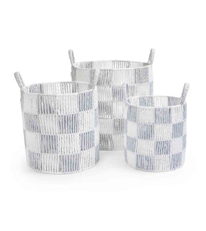 Checkerboard Storage Basket Set of 3 - Powder Blue
