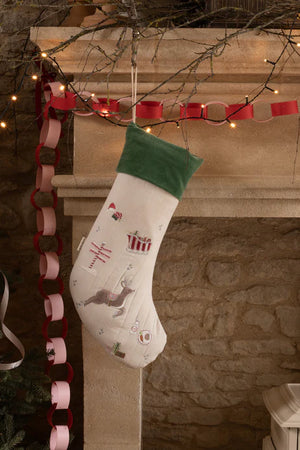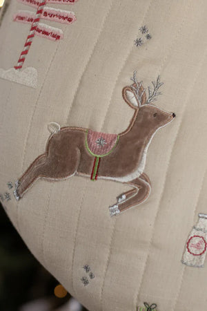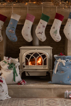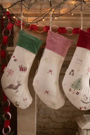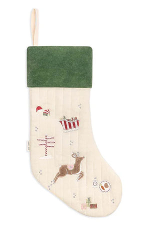 This Christmas stocking “The North Pole” adds a touch of timeless charm to your holiday mantels or hangings. Made from quilted organic cotton, it features “The North Pole” embroidery in classic red tones and a soft texture that feels cozy and welcoming.