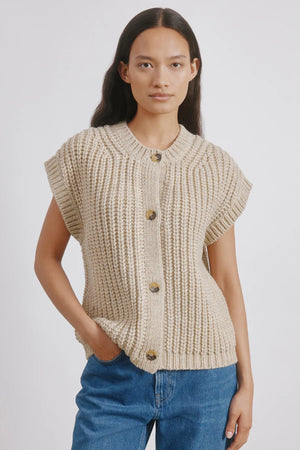The Chunky Rib Waistcoat is a stylish knit layering piece that gives structure without restriction.