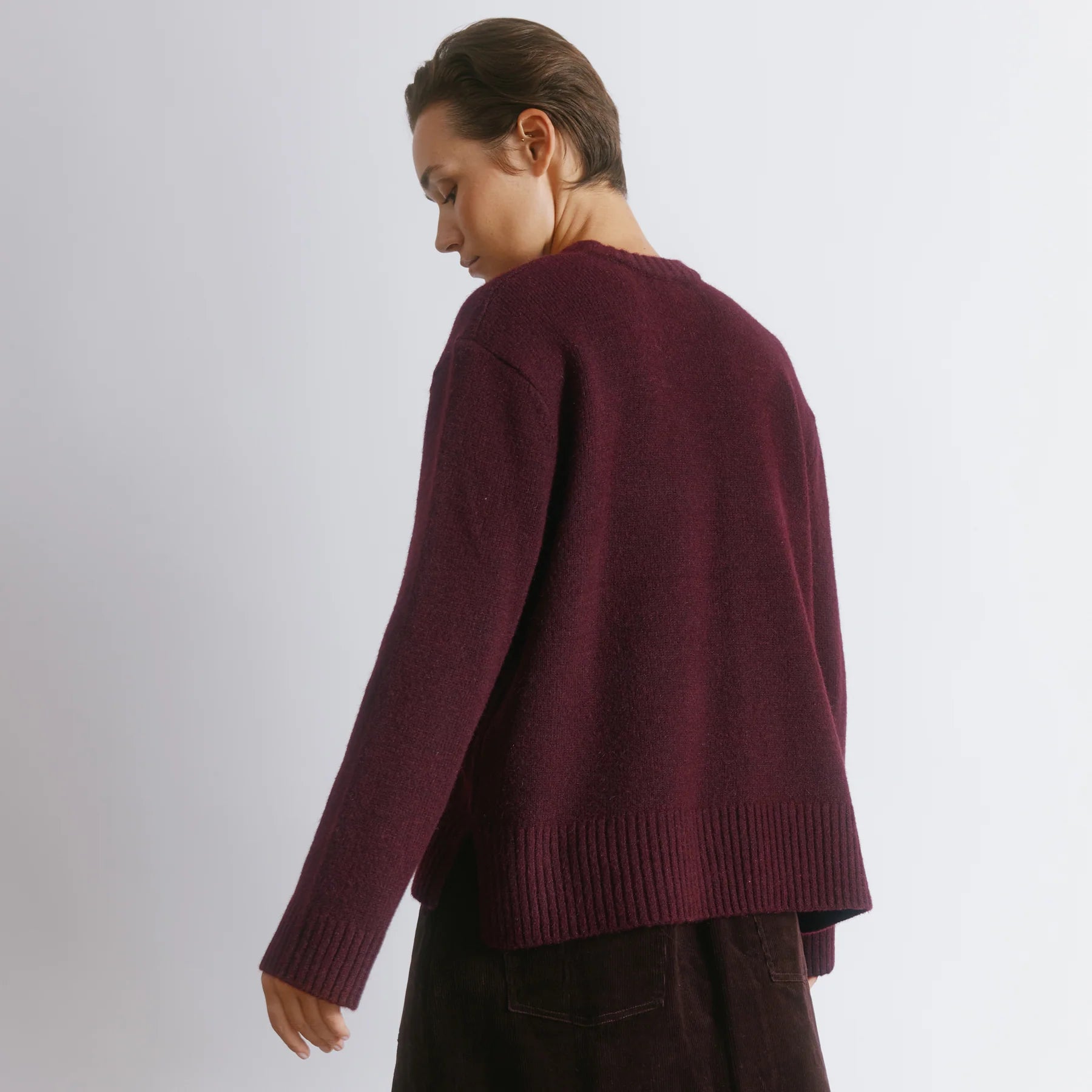 The Cosy Jumper is a luxurious knit you’ll want close in colder months. It features rich ribbed detailing at the neck, hem, and cuffs, giving it refined structure while keeping you warm. The relaxed silhouette drapes gently and gives room over your stomach and layers beneath, making it ideal for both pregnancy and post-pregnancy wear.
