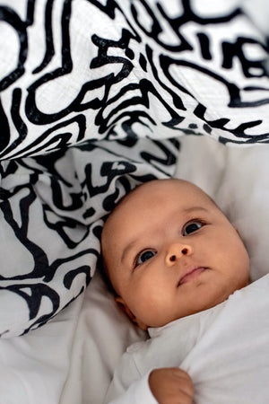 Bring together artistry and science in one versatile muslin set. These two cloths are designed to grow with your baby — helping with feeding, cuddles, sensory play, and more.