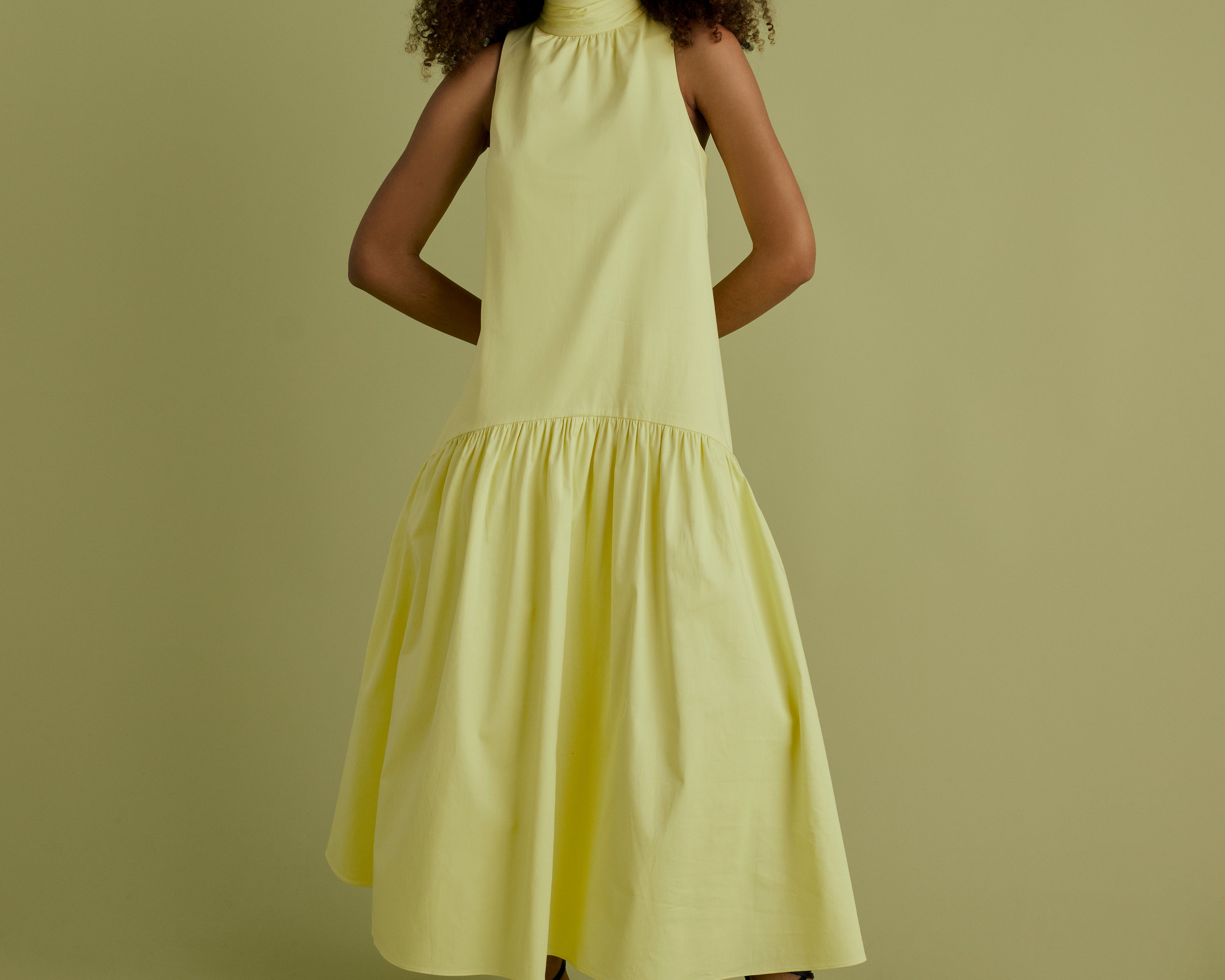 The adjustable tie-back detail allows you to tailor the fit as your body changes, making it especially well suited to early pregnancy. The midi length feels polished and timeless, while the soft yellow tone brings warmth and joy without overpowering. It’s occasionwear that feels considered, comfortable, and confidence-boosting.