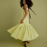 The Tie Back Cotton Midi Yellow Dress is a beautiful option for early pregnancy occasions, when you want something special that doesn’t feel restrictive or overly structured. Crafted in breathable cotton, it offers natural movement and comfort while maintaining an elegant silhouette that works perfectly for weddings, baby showers, and summer events.