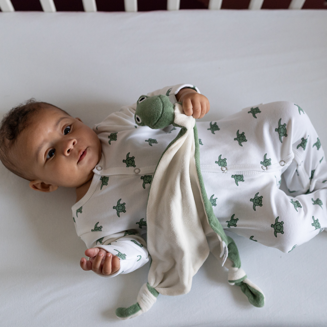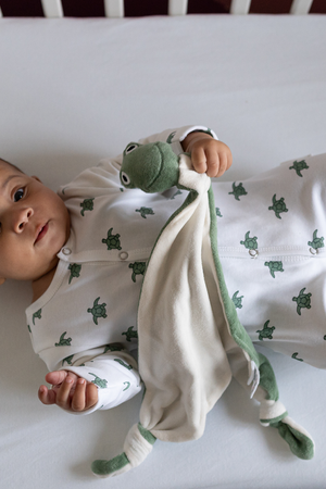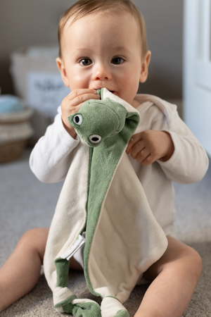 The Frog Comforter is a soft, soothing companion for little ones, made with clean, natural materials that feel gentle and safe. It’s crafted from organic cotton velour plush and filled with biodegradable bamboo fibre to ensure it’s breathable and gentle on skin. The inks used are safe and Oeko-Tex certified, keeping chemicals out of baby’s world.