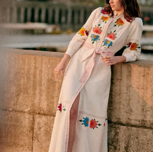 Made from 100% organic cotton this gorgeous long dress is the ultimate addition to your Spring Summer wardrobe. Dress down with pumps and sandals and a denim jacket or dress up with wedges and statement earnings.