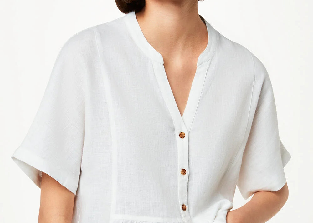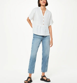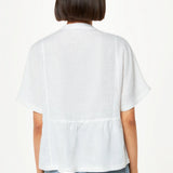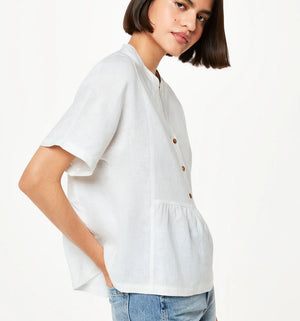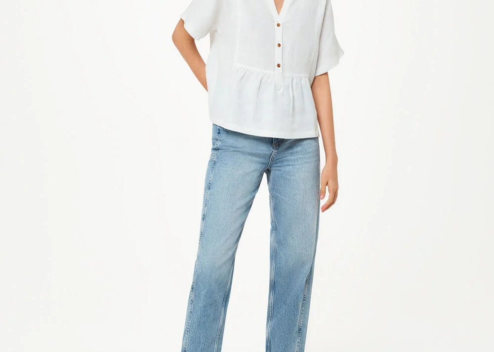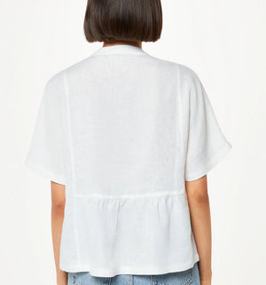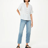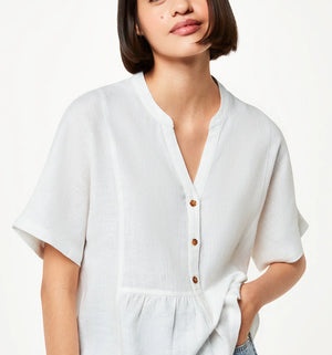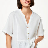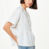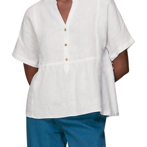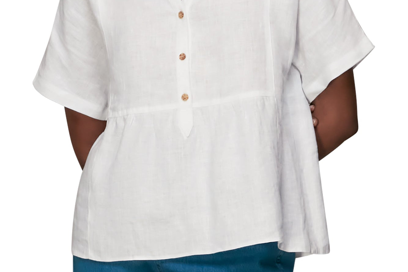 A summer staple made simple. The White Hannah Linen Peplum Blouse is crafted from 100% breathable linen — the ultimate warm-weather fabric. With a soft V-neckline, elbow-length sleeves and a subtle peplum hem, it strikes that balance between relaxed and refined.