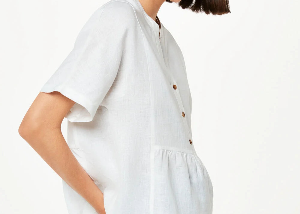 The lightweight structure keeps you cool through warmer days, while the gentle flare at the waist gives a flattering, easy shape that works beautifully with denim shorts, linen trousers or your go-to maternity jeans. A timeless piece that fits effortlessly into your everyday summer wardrobe.