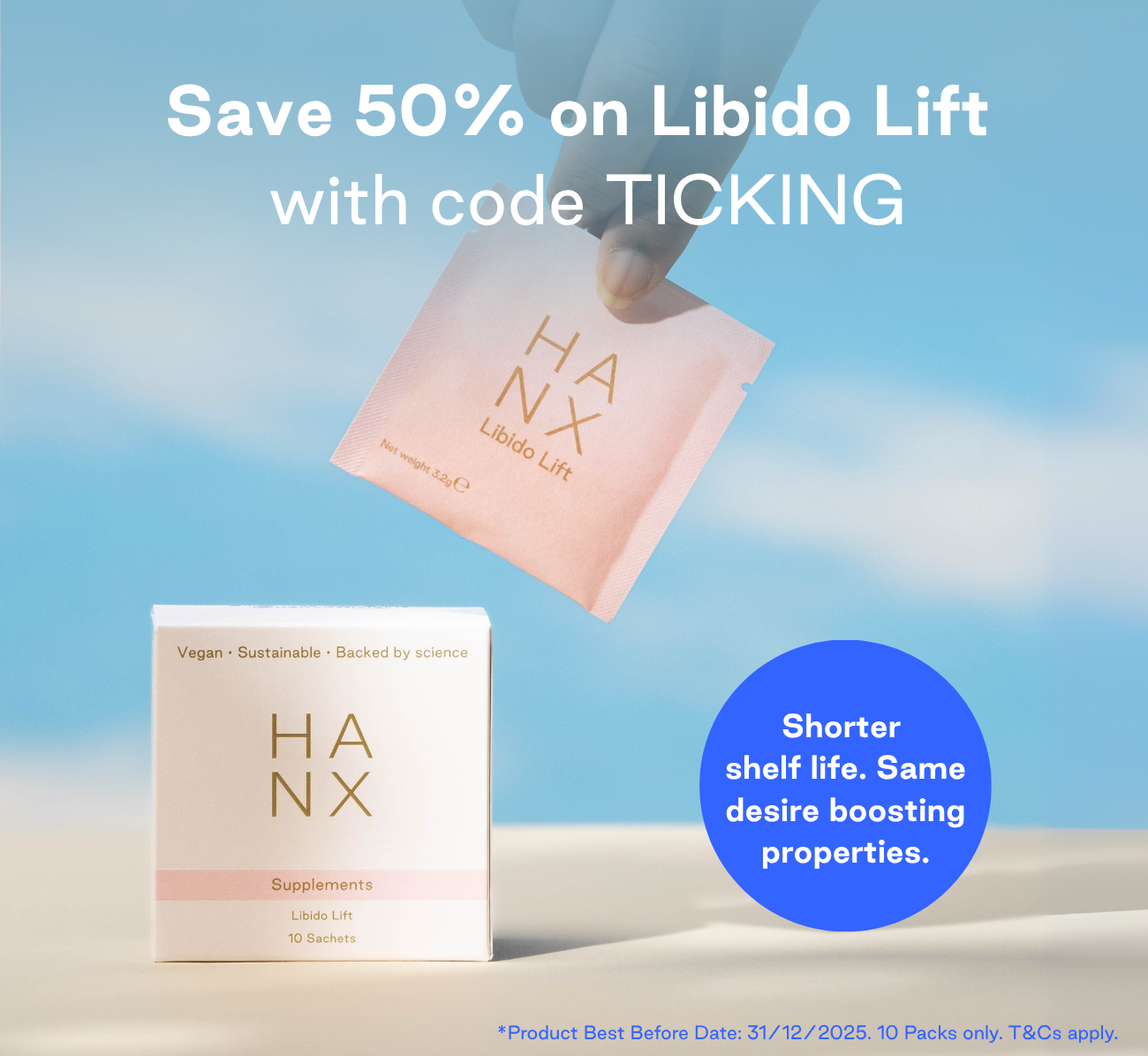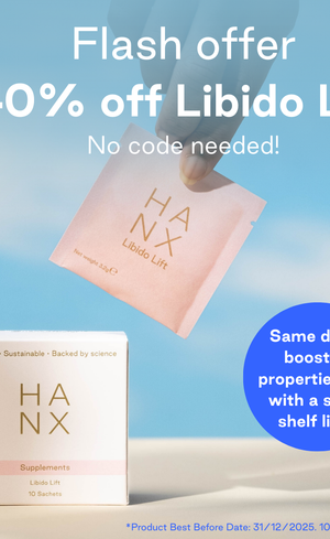 Fluctuating desire levels are common, but you don't have to just put up with it. Introducing HANX Libido Lift, our first ever natural supplement to support libido in women. Formulated by our fave nutritionist, with our Co-Founder and gynae expert Dr. Sarah Welsh, Libido Lift is a vegan-certified food supplement featuring scientifically backed ingredients that can help boost sex drive.