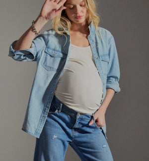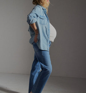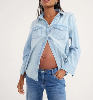 The Denim maternity Shirt Light Wash is made for motherhood’s messiest, busiest, and most beautiful moments. It’s the shirt you’ll reach for again and again—pregnant, postpartum, and well after.