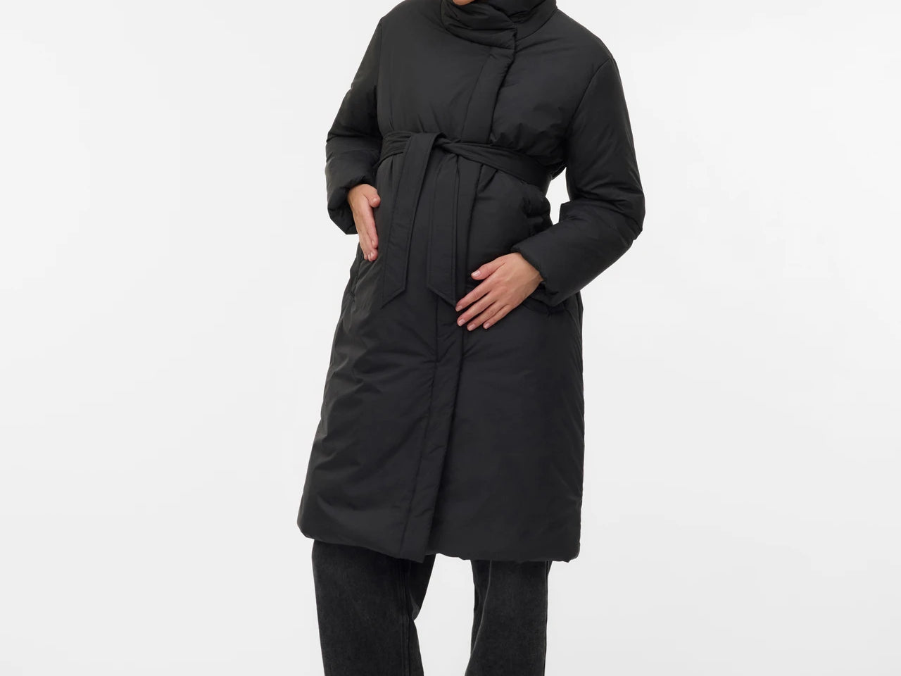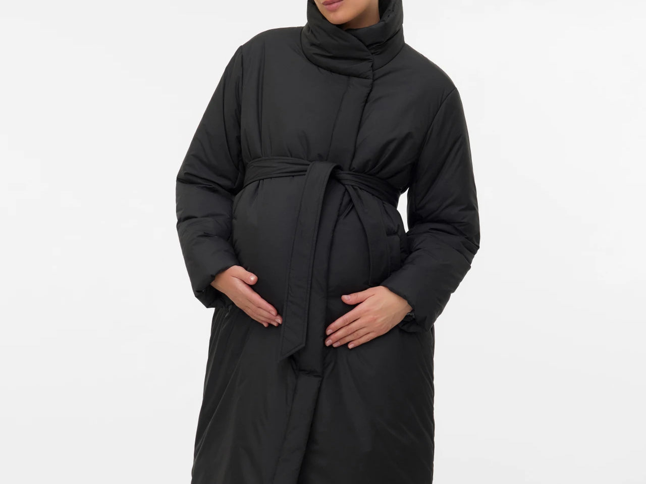 This High Stand-Up Collar Quilted Jacket is a sleek outer layer made to keep you warm without bulk. The light quilted construction gives a soft, padded feel that’s easy to layer through the seasons. The high collar offers extra warmth and a clean, modern look, while the straight silhouette works over your growing shape without feeling restrictive.