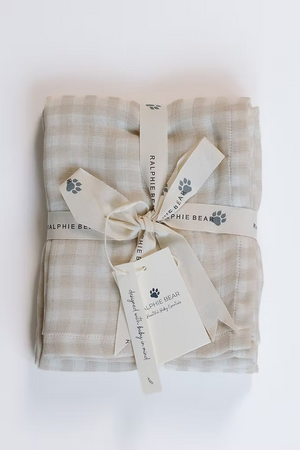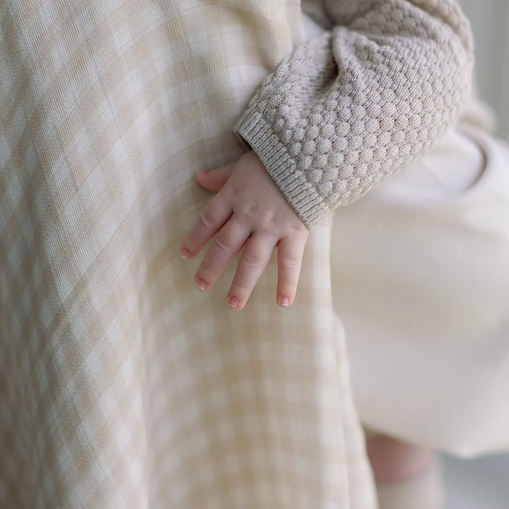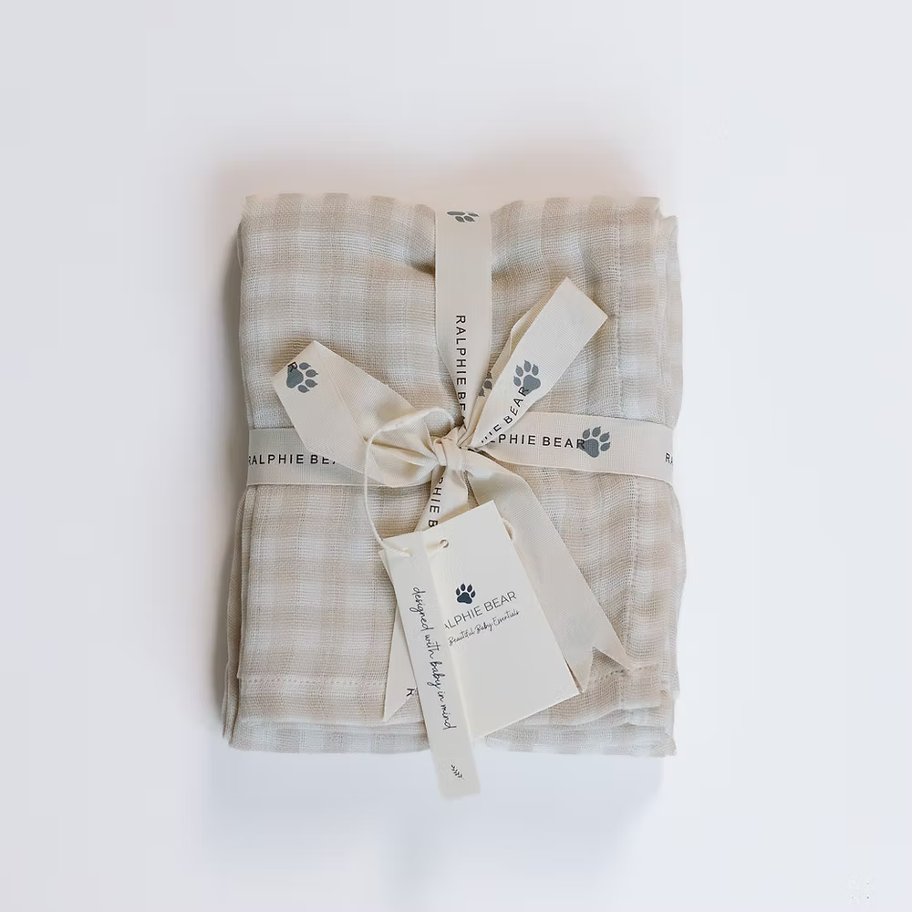 Simple, soft, and endlessly useful — the Gingham Beige Large Swaddle Muslin by Ralphie Bear is the kind of piece every new mum ends up reaching for daily. Made from 100% GOTS-certified organic cotton, it’s gentle on sensitive skin and beautifully breathable.
