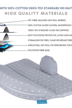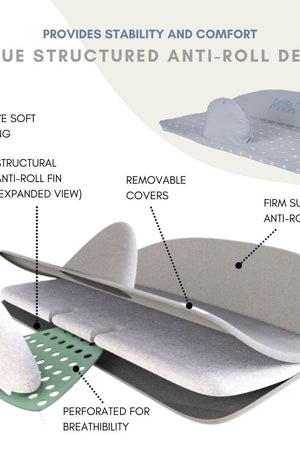 Ideal for mamas in need of some time-out to nourish their baby whilst lying down. The pillow gives you a relaxing place to feed your baby, with its unique Anti-Roll Fin and Anti-Roll Barrier giving you added support, whilst helping with your and baby's positioning.
