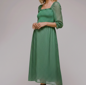 Elegant, modern and vivacious, this is a dress to turn heads all year. It's designed with a shirred waist and sheer sleeves for extra elegance, whilst the green and black colour way makes a statement. Style with everything from boots to heels, depending on the occasion.