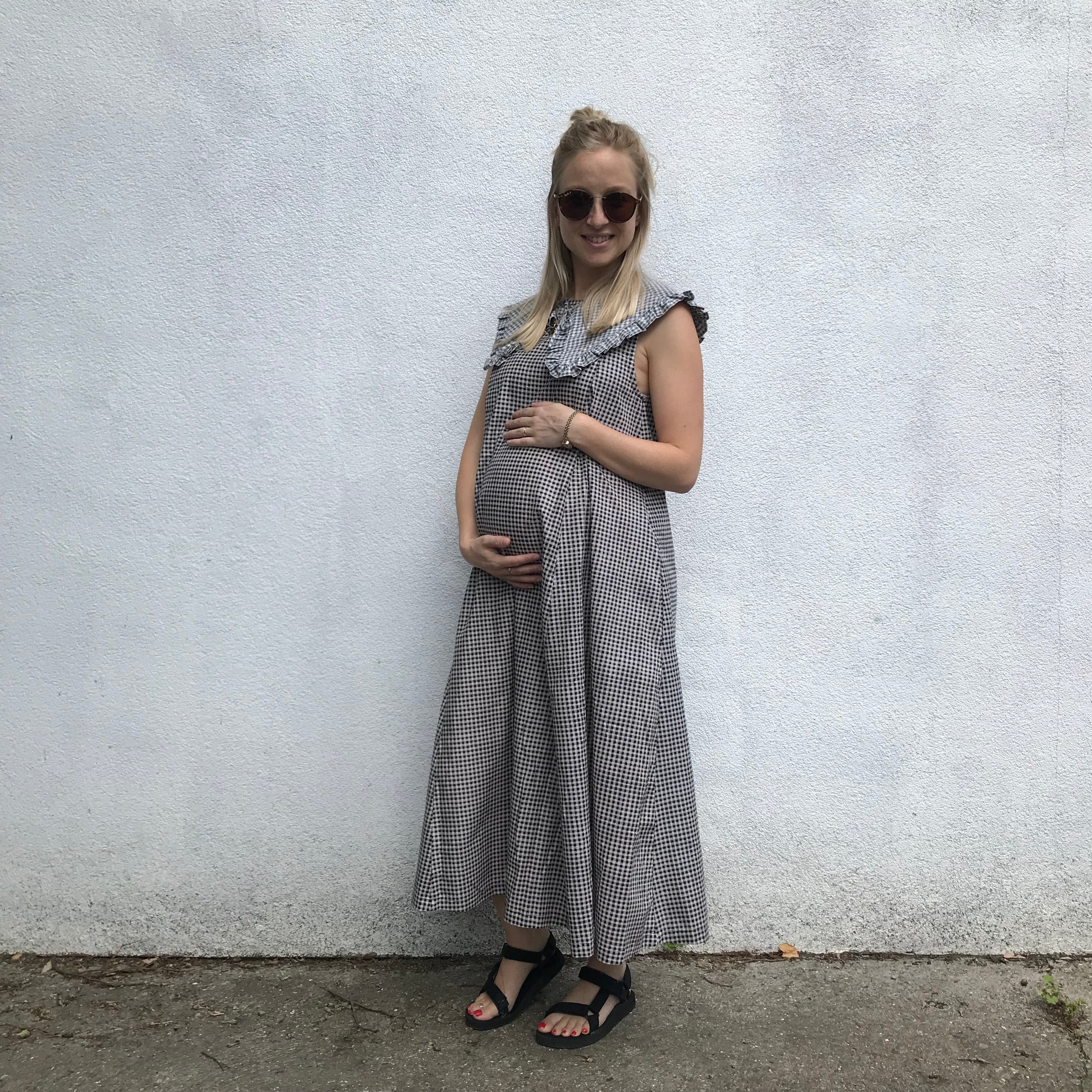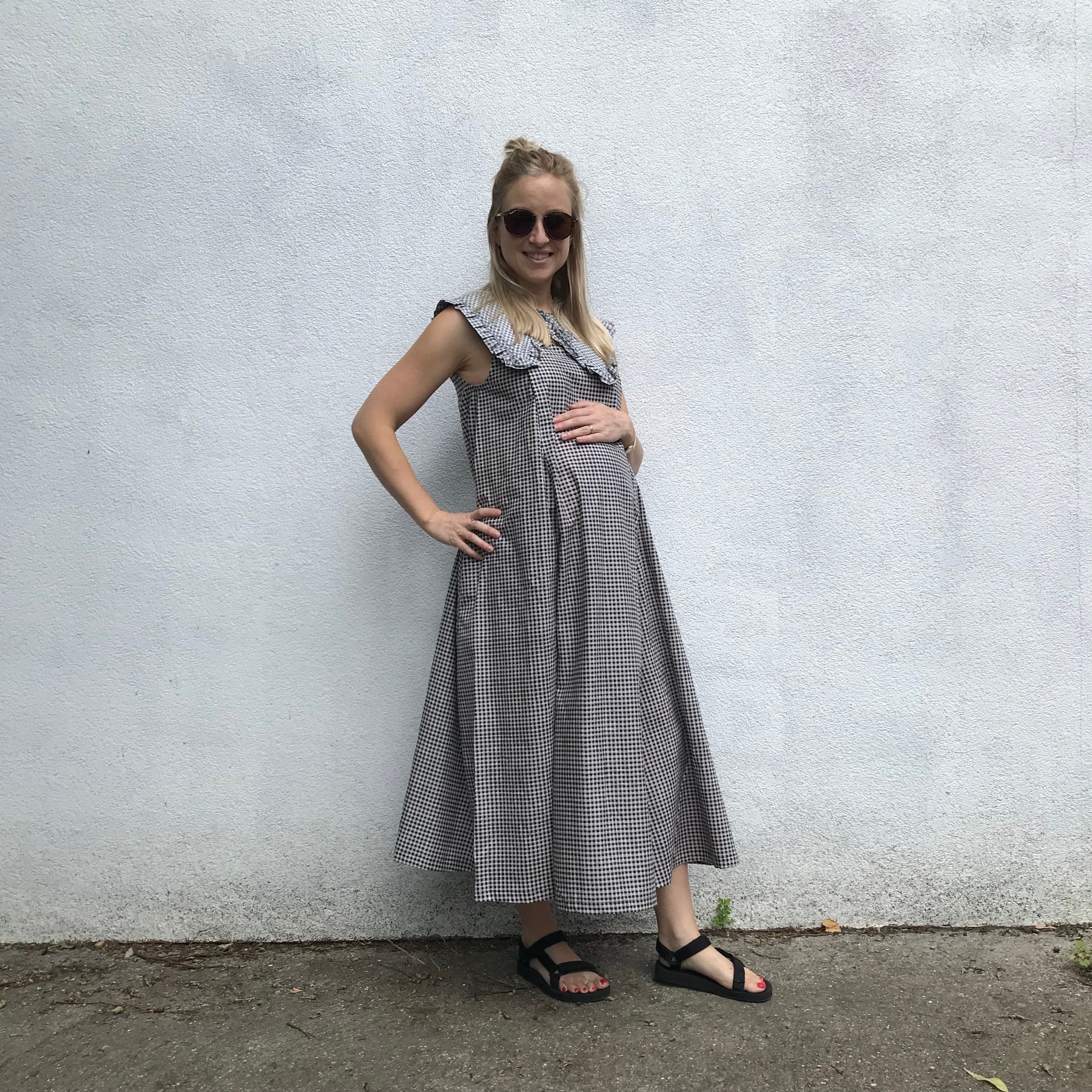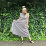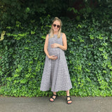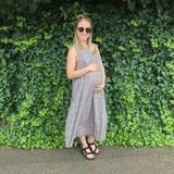 This dress is thoughtfully designed to support both your changing body and your daily life. The cotton is soft and breathable. Poppers are concealed along the seam so you can nurse easily when the time comes. The sleeveless style keeps it versatile, while the scoop V at the back (which you can also wear at the front) adds subtle character. Two pockets give you practicality without bulk. Midi length means good coverage while keeping things elegant.