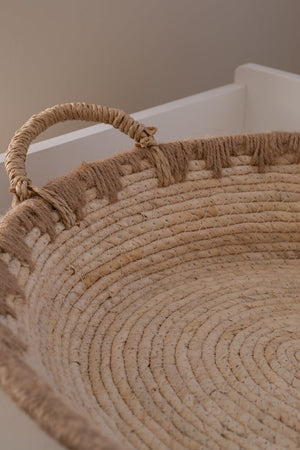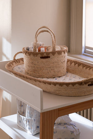 The Avery Row Maize Changing Basket is a beautiful, practical alternative to bulky plastic changing units. Handwoven from natural maize with a jute trim, it brings warmth and texture into your nursery while keeping things simple and functional for everyday baby care.