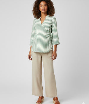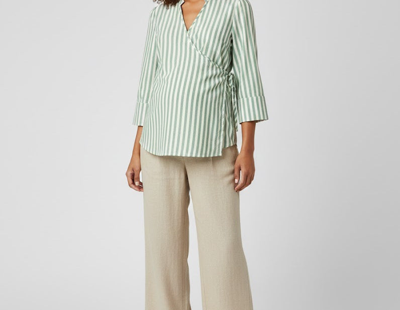 The Maternity Lia Shirt White and Green Stripe is made for mums who want to look put-together without sacrificing comfort. From morning nursery runs to weekend brunch, it’s your go-to for style that works as hard as you do.