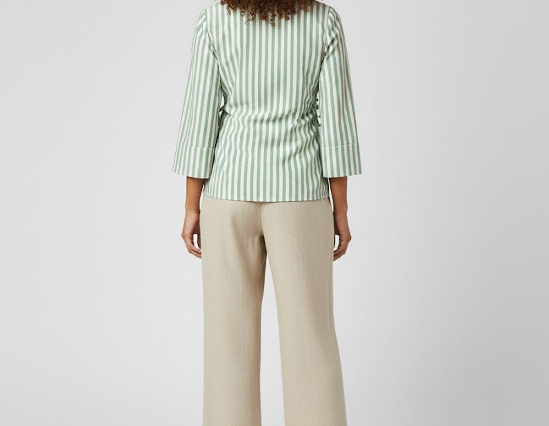 Meet your new mum-uniform hero: the Maternity Lia Shirt White and Green Stripe. Designed for real life, this shirt brings effortless style and comfort to every stage of motherhood—whether you’re bump-forward, breastfeeding, or chasing after little ones.