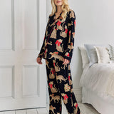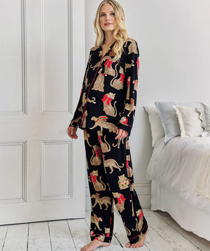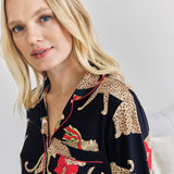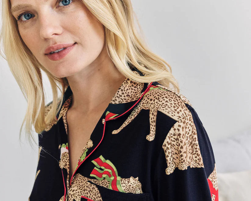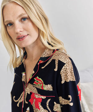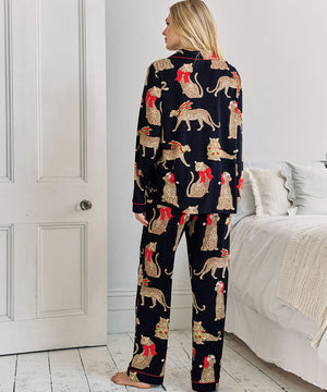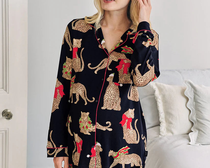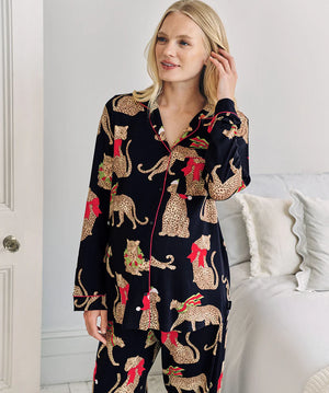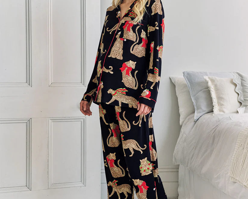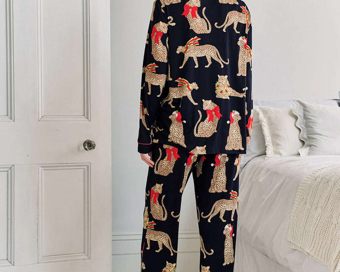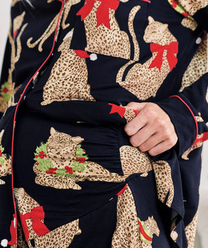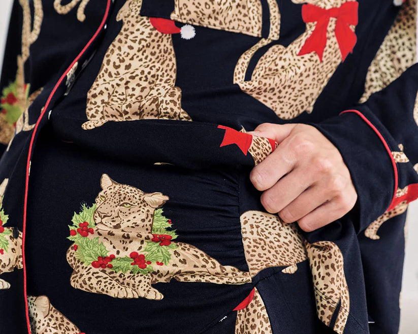 Because you deserve to be as comfy as you are festive. Chelsea Peers’ Maternity Christmas Leopard Pyjama Set brings all the joy of the season in a playful, hand-drawn print featuring leopards in Santa hats, red bows, and holly wreaths.