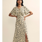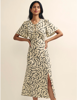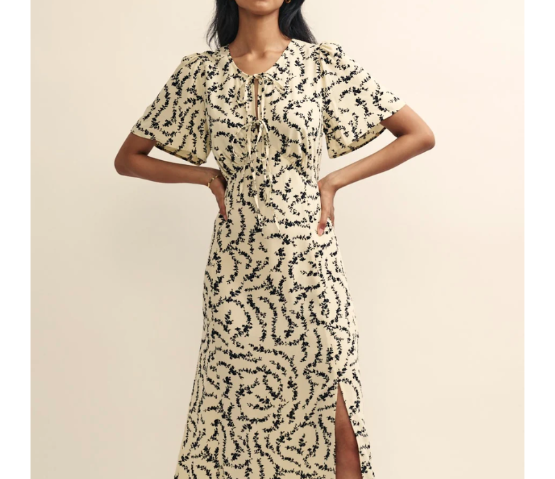 A bump-friendly take on an NC icon. Crafted entirely from responsible cream viscose, this ankle-grazing maxi comes detailed with a floral chain print that swirls elegantly across the dress. A floaty fit is accompanied with fluttery angel sleeves and a series of string ties that loop into bows. Style yours with relaxed espadrilles.