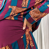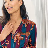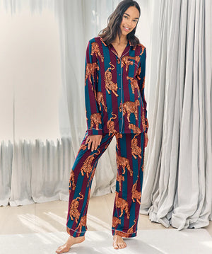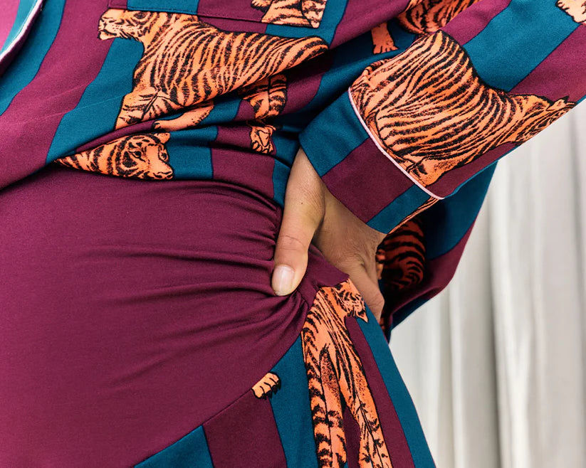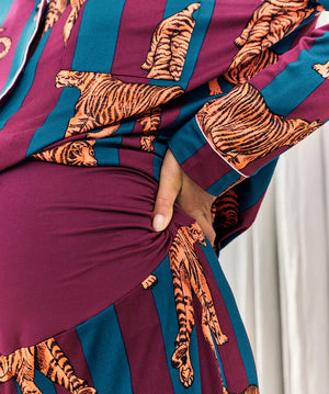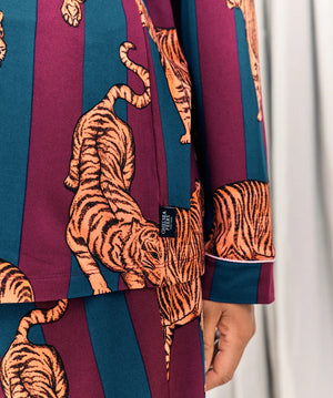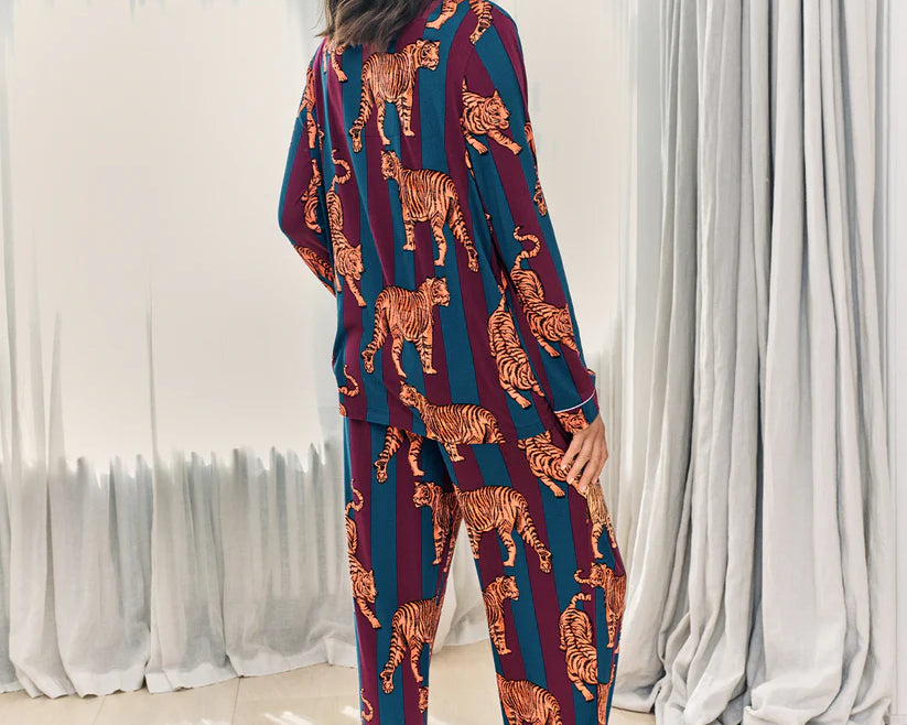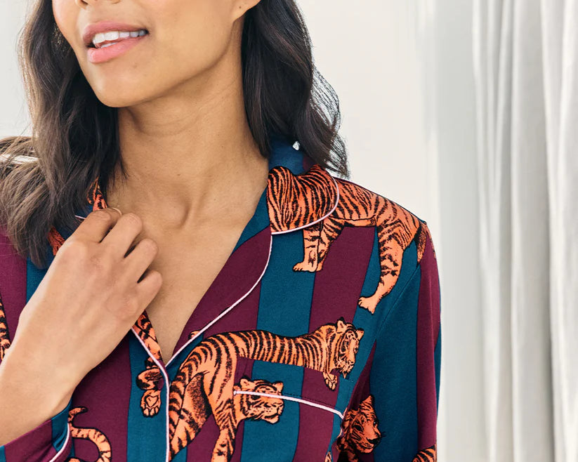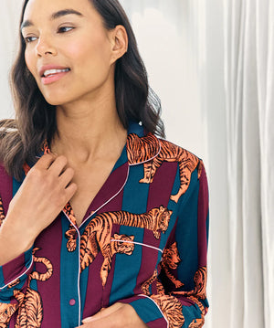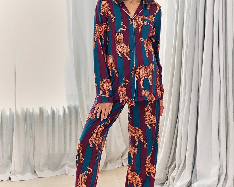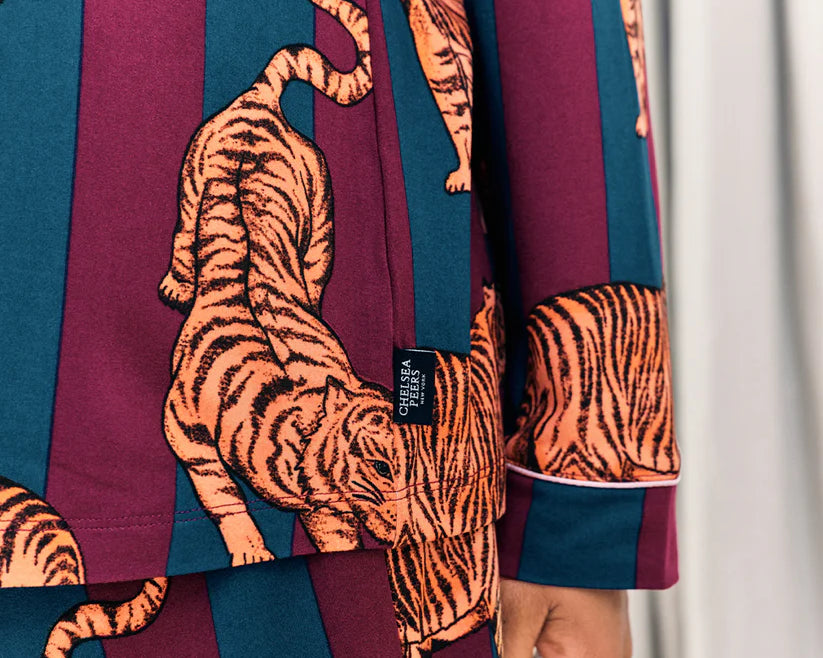 Because comfort shouldn’t mean compromising on style. Chelsea Peers’ Maternity Tiger Stripe Print Pyjama Set brings playful energy to cosy nights in, with hand-drawn tigers set against bold burgundy and blue stripes.