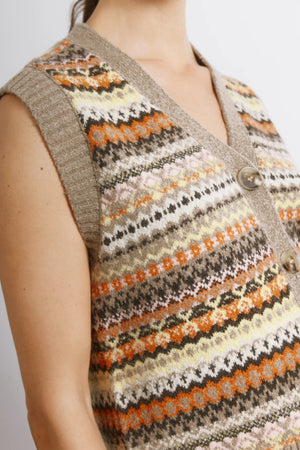 The Neutral Fair Isle Tank combines classic knit charm with comfort and wearability.