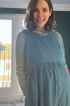 Hester is 7 months pregnant, 5ft 1" and is wearing a size XS in the Aegean Blue