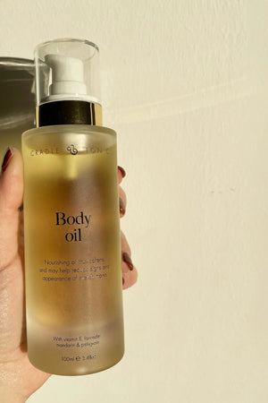 A silky, antioxidant-rich pregnancy stretch mark oil. Composed of almond oil, jojoba oil, lavender, sweet mandarin and petitgrain melts into the skin, actively stimulating the production of collagen and encouraging skin restoration at cellular level.