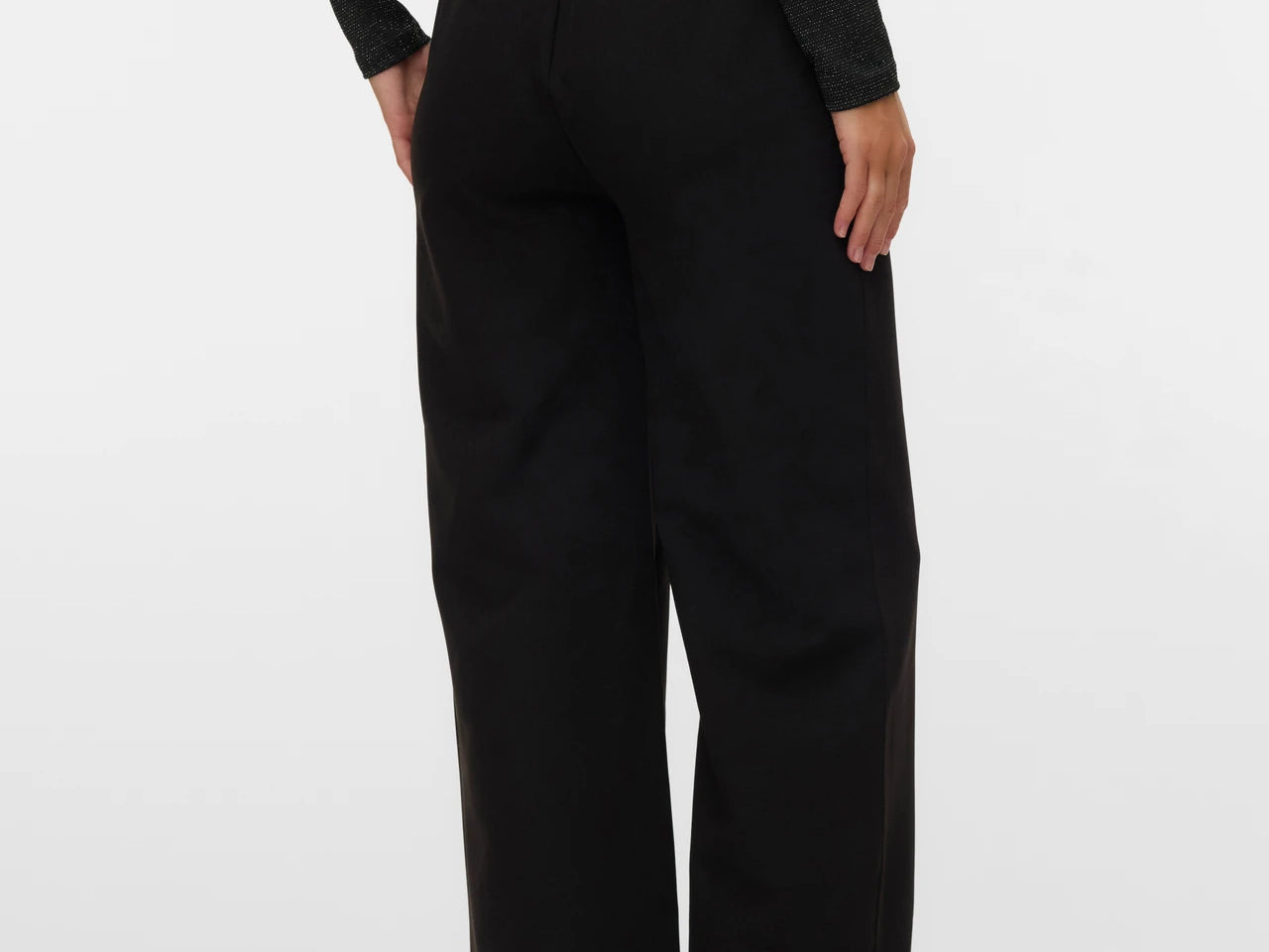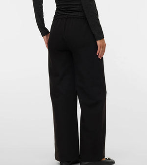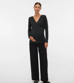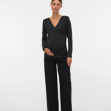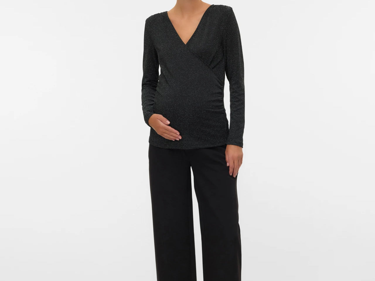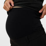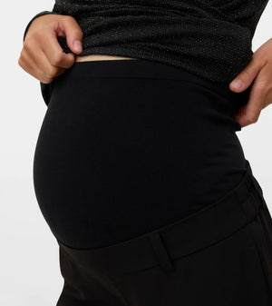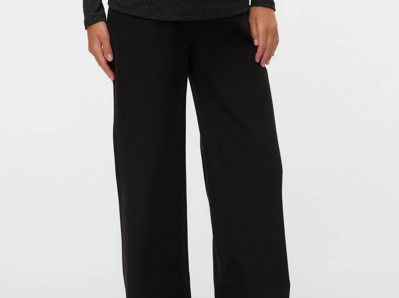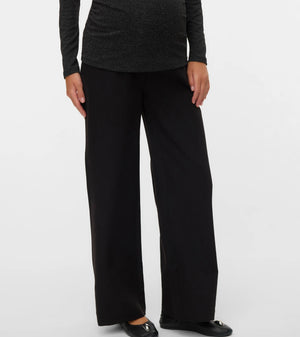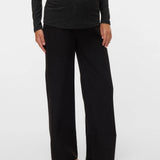 These Regular Fit Trousers in black are built to carry you through pregnancy and beyond. They have a mid rise and a wide-leg silhouette that gives relaxed shape without compromising style. A supporting bump band and elasticated waist provide comfort under your stomach now and flexible room afterward. They also feature belt loops for optional styling and are suited to both everyday wear and special occasions.