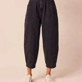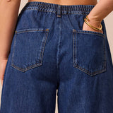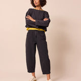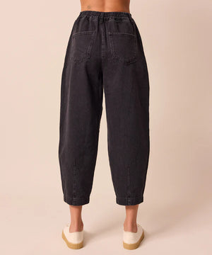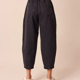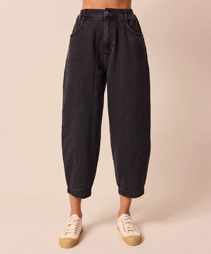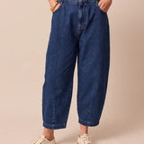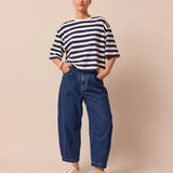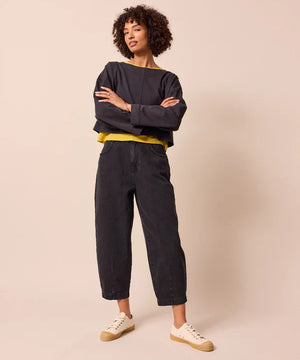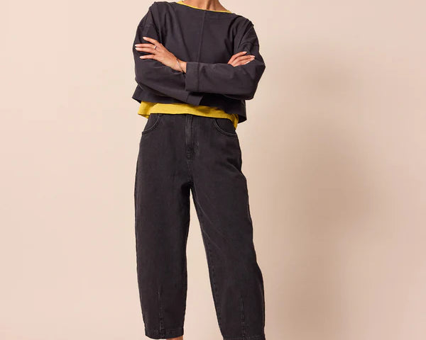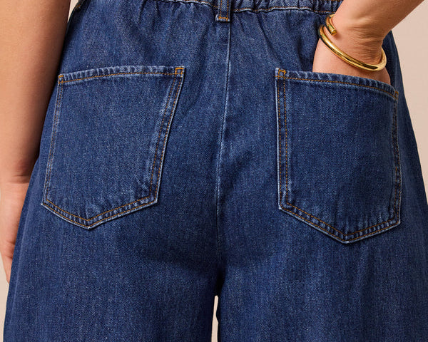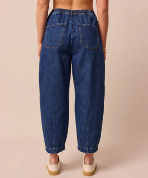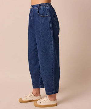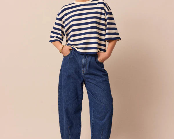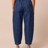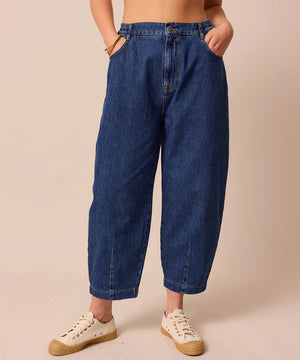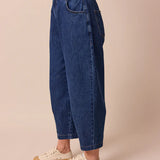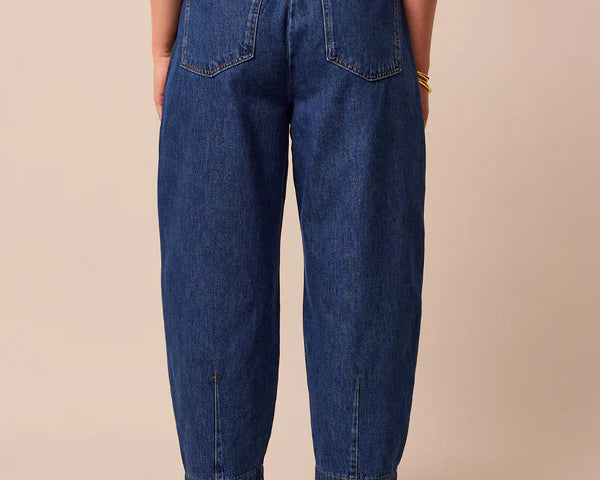 They’re made from a mid-weight denim blend with a new, more generous fit at the waist, hips & thighs. The front features a zip and button fastening, with an elasticated back waistband that flexes with your movement. A barrel leg silhouette gives a relaxed flow from the thigh down, tightening slightly at the ankle. You’ll find four practical pockets — two back patch and two side seam — perfect for carrying essentials.