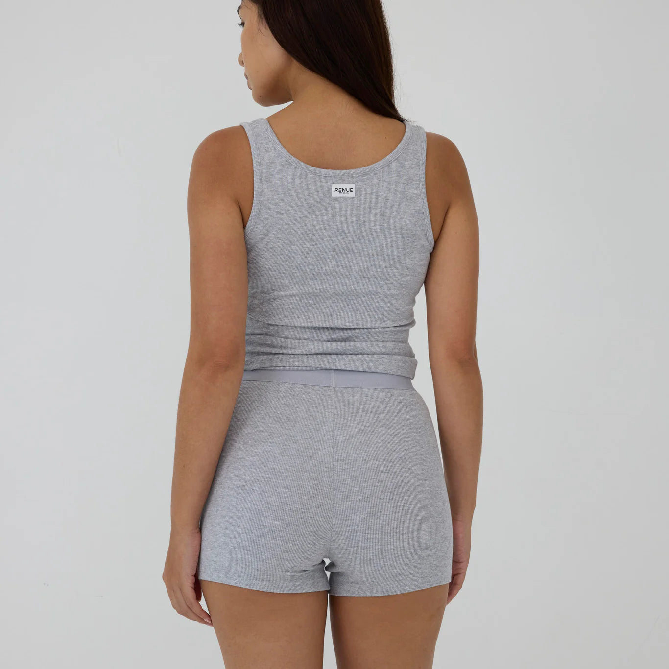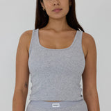 The Ribbed Tank Top in grey is your new everyday essential—built to layer, move, and feel soft against you. It’s made from a crinkle rib blend using Lenzing™ Modal, giving it a breathable, lightweight feel that’s kind to skin.