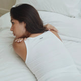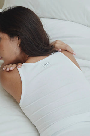 The Ribbed Tank Top in white is a timeless layering staple designed to work through every stage of motherhood.