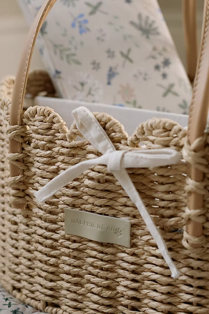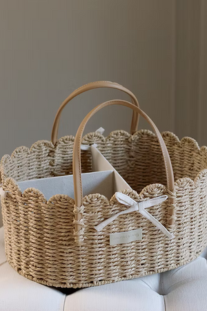 Lightweight yet sturdy, it’s perfect for moving from room to room or keeping beside your changing station. Finished with a sweet bow, it’s a thoughtful blend of style, structure, and everyday ease — ideal for new parents and modern homes.
