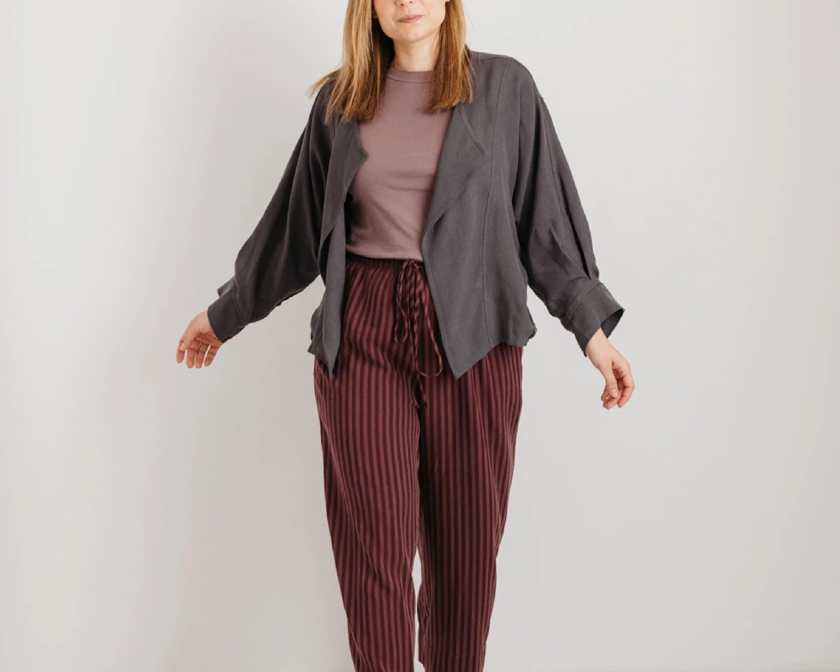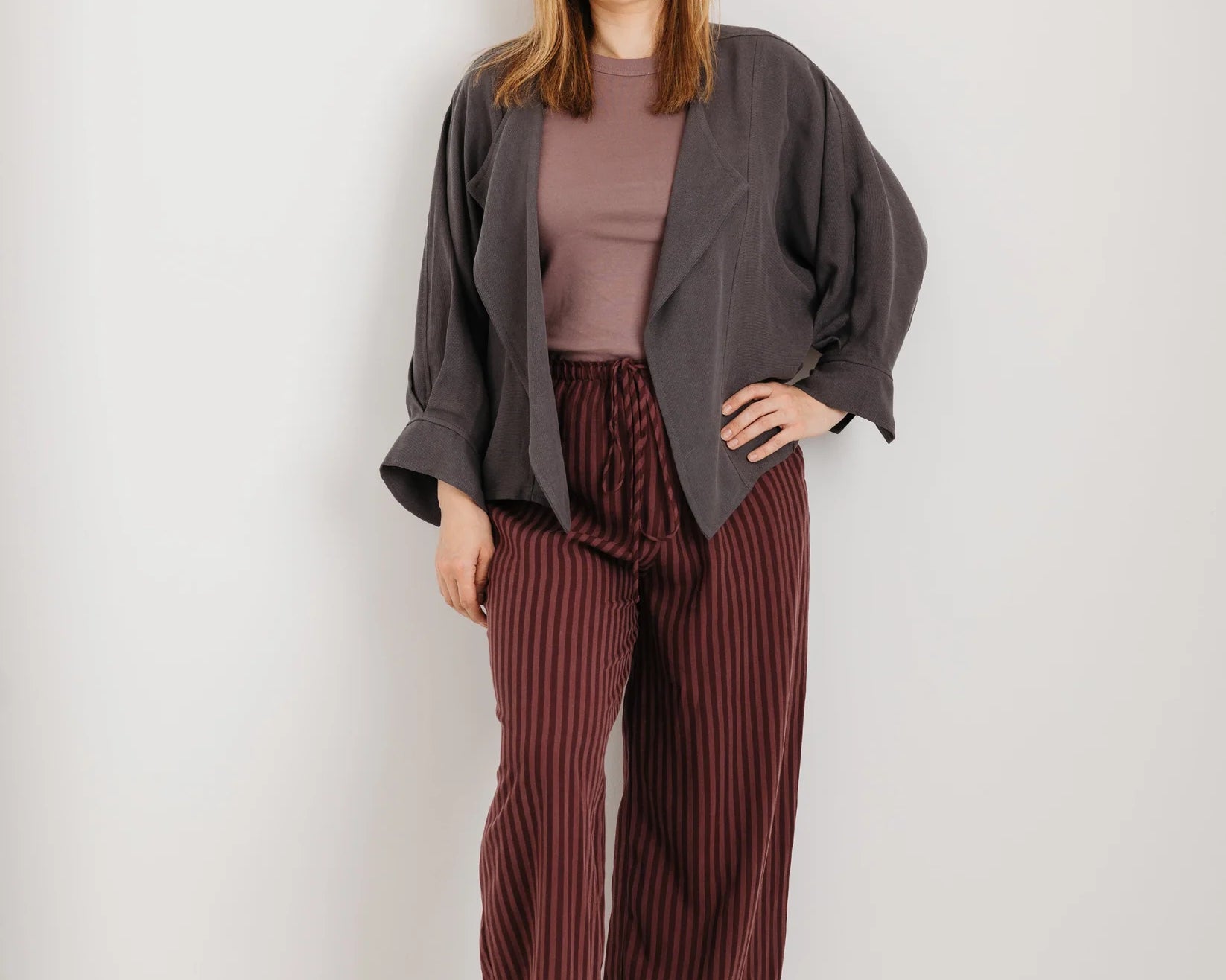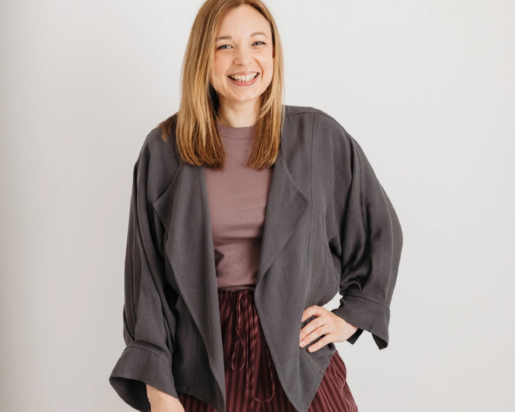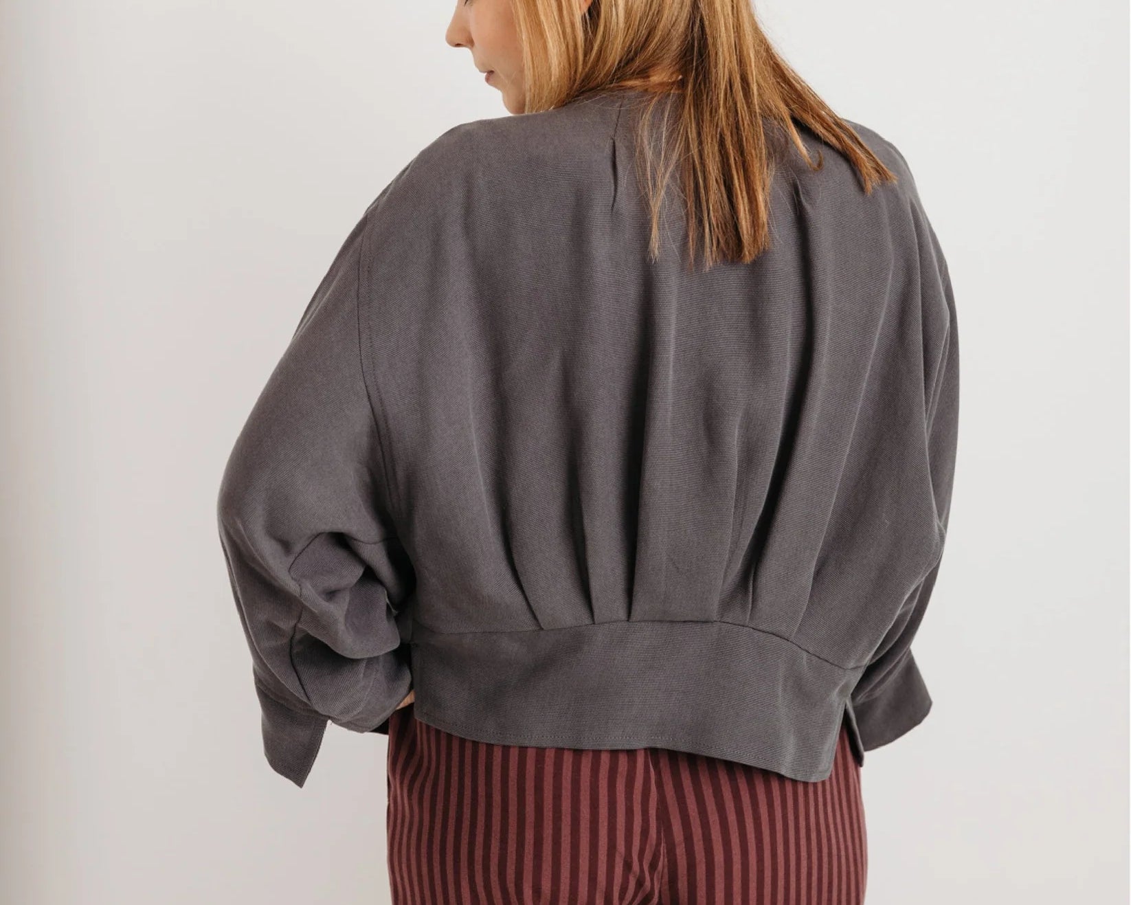 Meet The Stella Jacket in charcoal grey — a refined layering piece that blends elegance with function, designed to carry you through pregnancy and beyond.