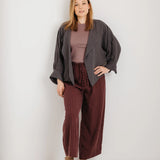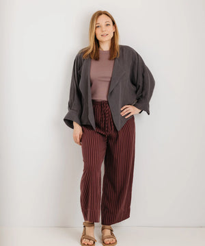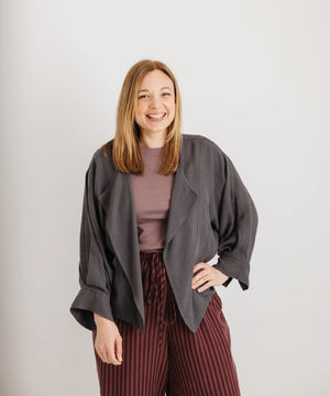 This jacket is made from soft, drapey Tencel that flows beautifully without clinging. Its relaxed open front and waterfall paneling let it sit gently over your stomach and curves. Subtle pleated back and cuffed sleeves add detail, while the silhouette remains effortless. It pairs beautifully over dresses, jumpsuits or even jeans — day to night, casual to elevated.